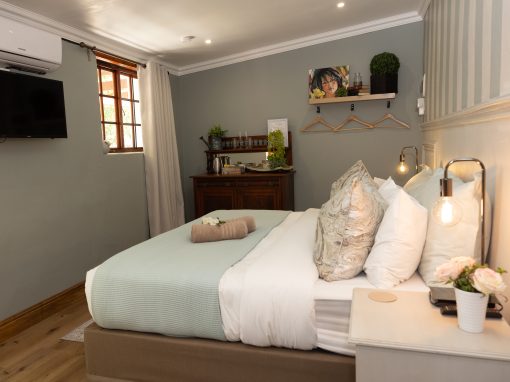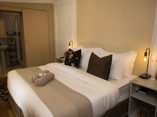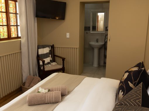 Spacious and serene, this room offers soft finishes, air-con, and a welcoming place to rest after a day in Robertson. A tranquil guesthouse room in Robertson, perfect for restful evenings.